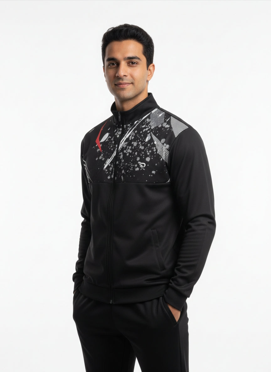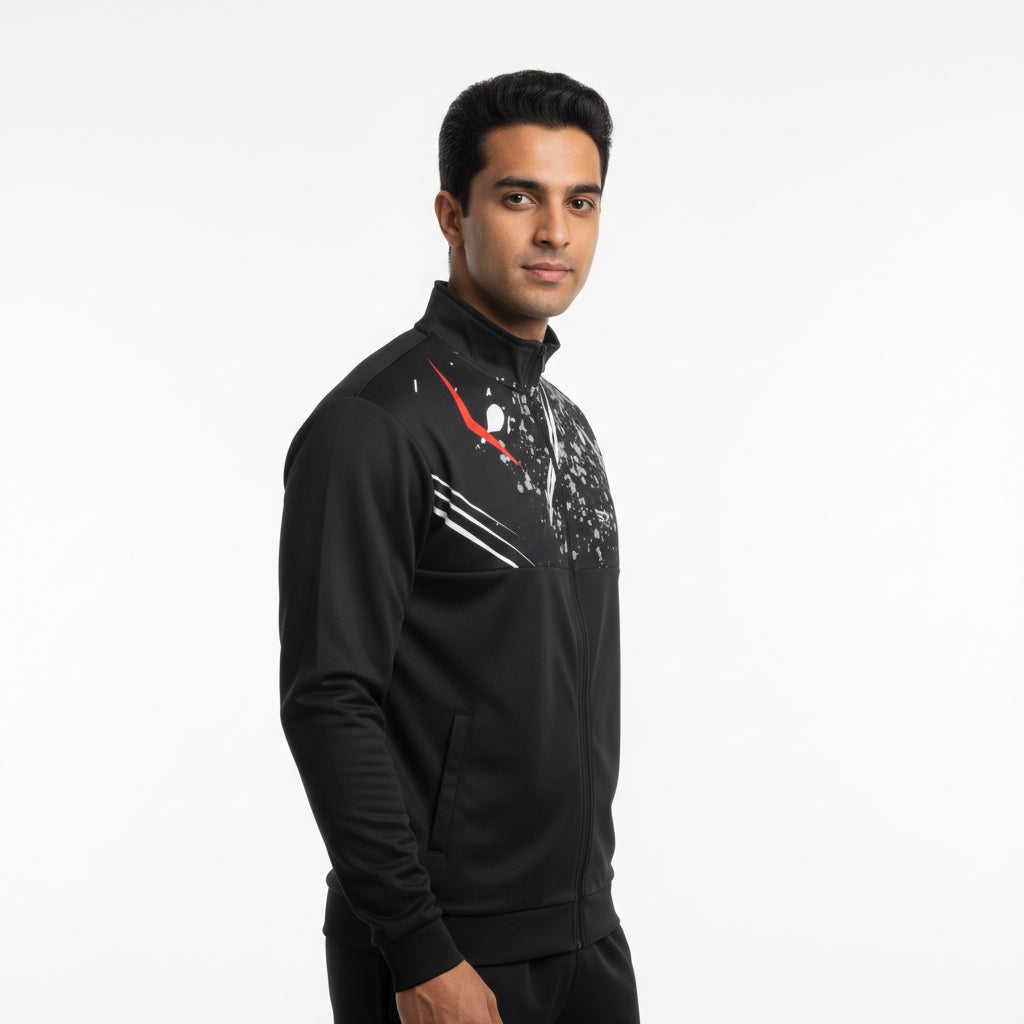 Step into effortless style and peak performance with this premium black jacket, engineered for comfort, durability, and everyday versatility. • Premium Material: Crafted from a dynamic blend of 94% polyester and 6% spandex, offering exceptional stretch, long-lasting durability, and efficient moisture-wicking to keep you dry and comfortable. • Weather-Ready Protection: Designed with a water-resistant finish to shield you from light rain and changing outdoor conditions. • Perfect Fit: Features a modern, tailored athletic cut that layers smoothly while allowing full...