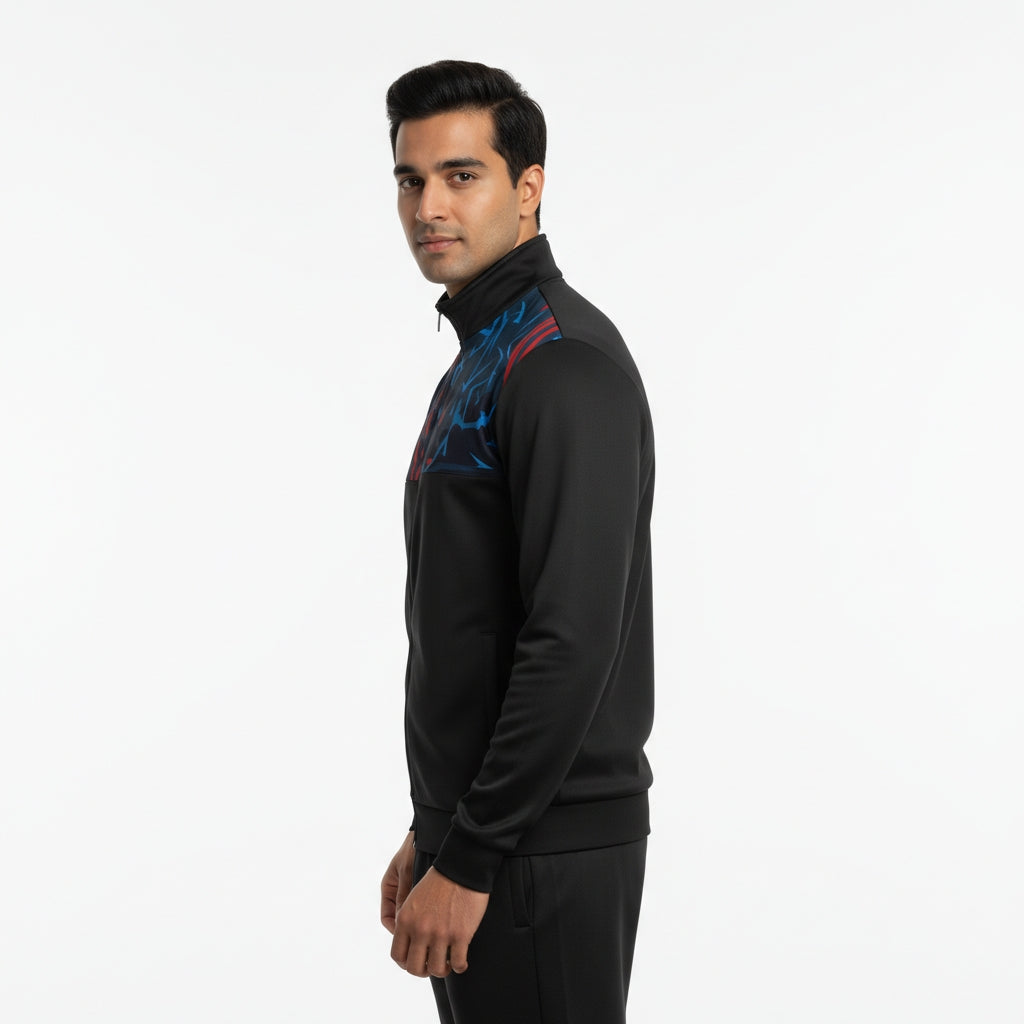 Step into effortless style and peak performance with this premium black jacket, engineered for comfort, durability, and everyday versatility. • Premium Material: Crafted from a dynamic blend of 94% polyester and 6% spandex, offering exceptional stretch, long-lasting durability, and efficient moisture-wicking to keep you dry and comfortable. • Weather-Ready Protection: Designed with a water-resistant finish to shield you from light rain and changing outdoor conditions. • Perfect Fit: Features a modern, tailored athletic cut that layers smoothly while allowing full...